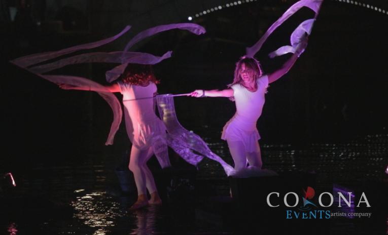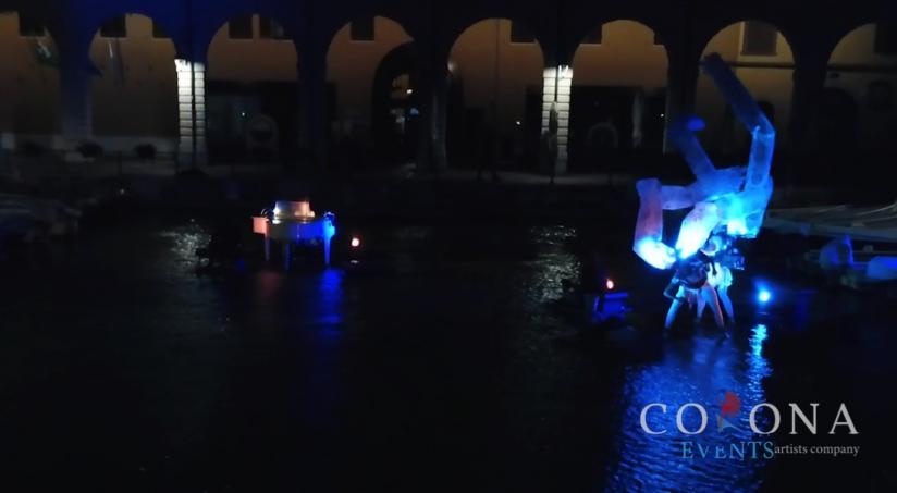 The floating stages, the last creation of Roberto Corona, have sailed around the port of the town with dancers, musicians and singers. A real floating piano with the pianist and singer Maria Angela Ciurleo and the soprano Sachika Ito, has delighted the audience with original songs written especially for the occasion and choreographed on water by our professional dancers.