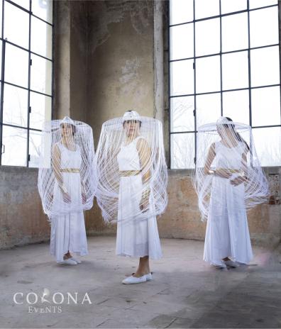 Con le loro frange incastonate di perle, le nostre Dervisci vorticano tra gli spettatori, coinvolgendoli in una danza evocativa ed eterea, come in un sogno ad occhi aperti.